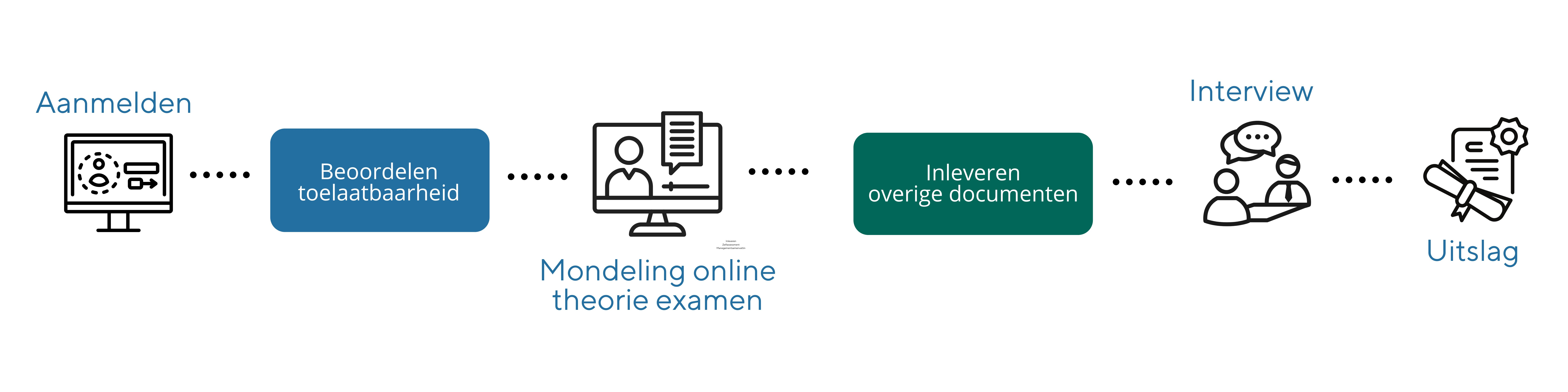 Nadat de vorige stap succesvol is afgerond zullen wij samen met jou en de assesorren een datum afspreken voor het theorie-examen. Het theorie examen wordt mondeling afgenomen en duurt maximaal 90 minuten. Het mondeling-theorie-examen zal online plaatsvinden via Zoom of Teams.